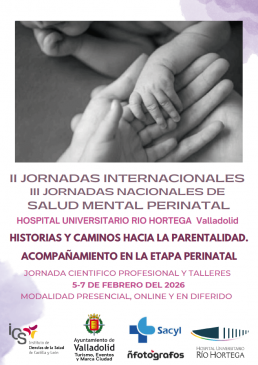 Los días 6 y 7 de febrero de 2026 (talleres previos el 5 de febrero) se celebrarán las II Jornadas Internacionales y III Nacionales de Salud Mental Perinatal del Hospital Universitario Río Hortega de Valladolid bajo el título Historias y caminos hacia la parentalidad. Acompañamiento en la etapa perinatal.